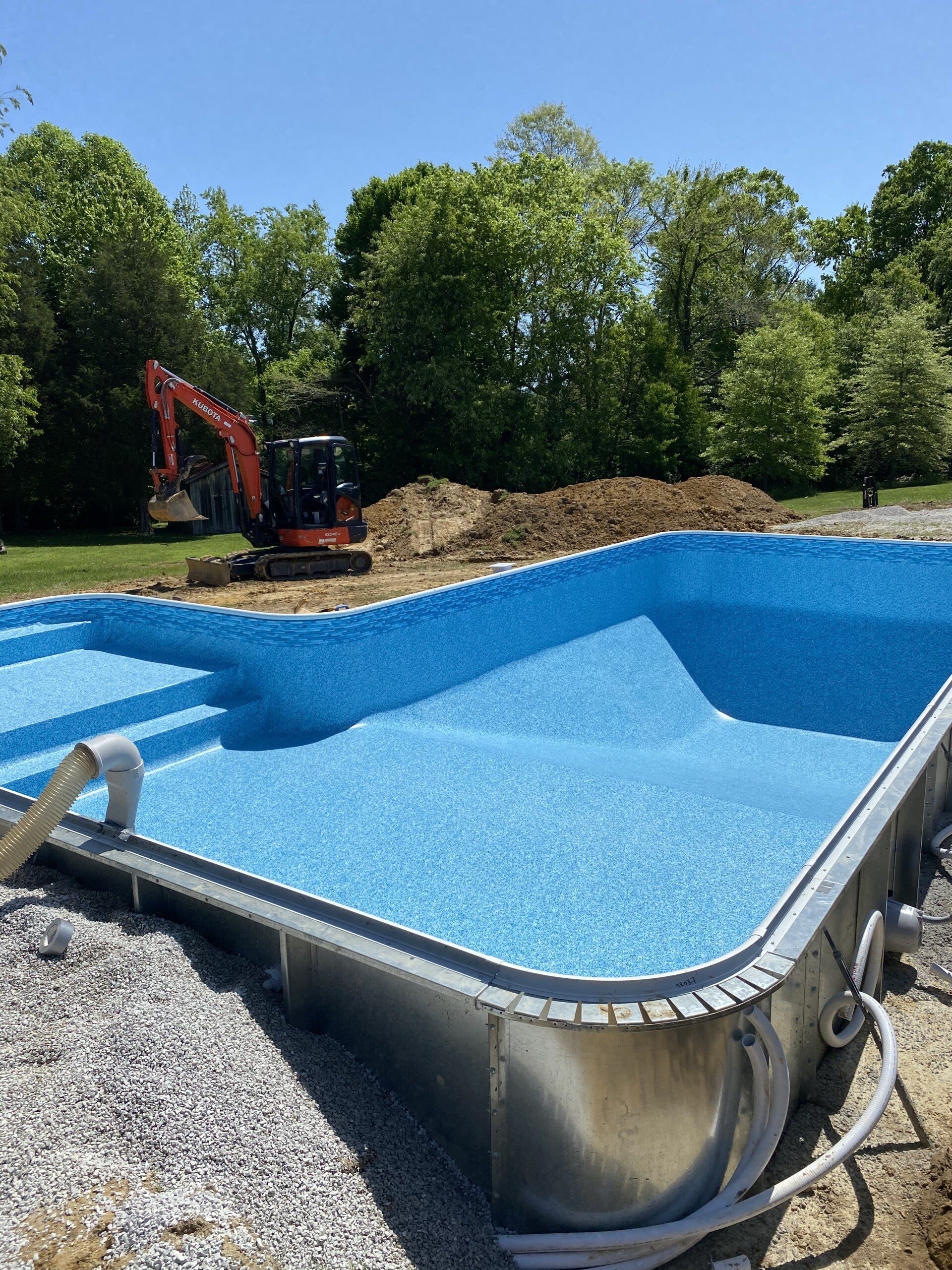 Professional installation of steel wall vinyl liner pools in various shapes and sizes, customized with your desired features. Create the pool of your dreams with our expert installation services. As well as Polymer Wall Pools.